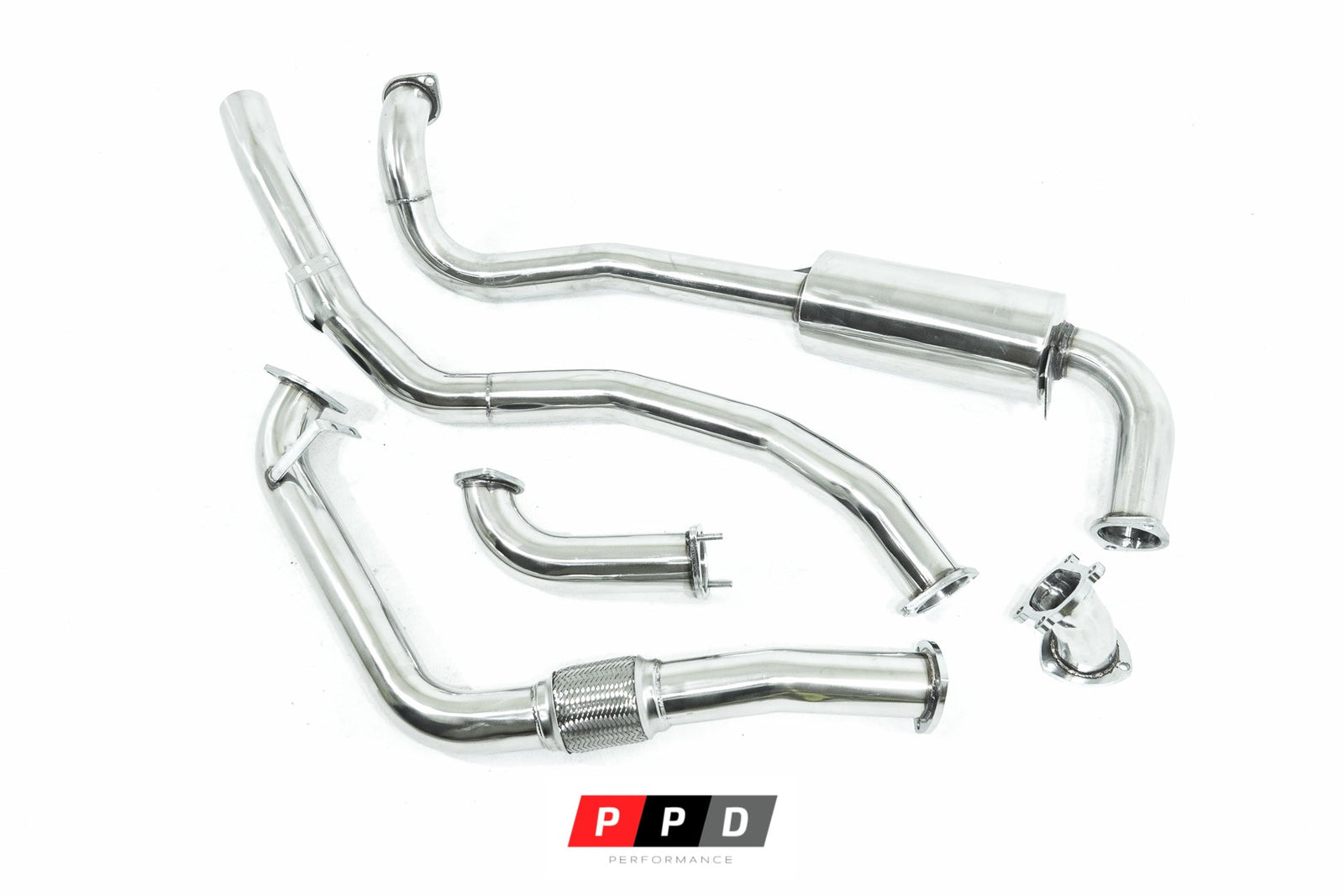 Replace the restrictive factory exhaust system with this brand new PPD Performance Polished Stainless Steel unit.